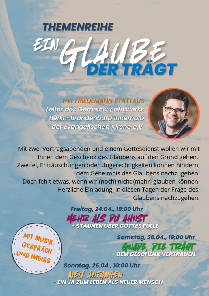 Als Mitglied im Gemeinschaftswerk Berlin-Brandenburg (GWBB) gehören wir zur Ev. Kirche Berlin-Brandenburg schlesische Oberlausitz (EKBO).